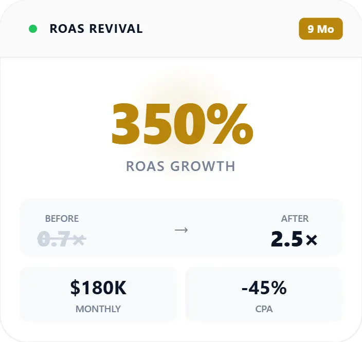 From chaos to 2.5× ROAS. Complete Google Ads rebuild scaling to $180K/month profitably.
