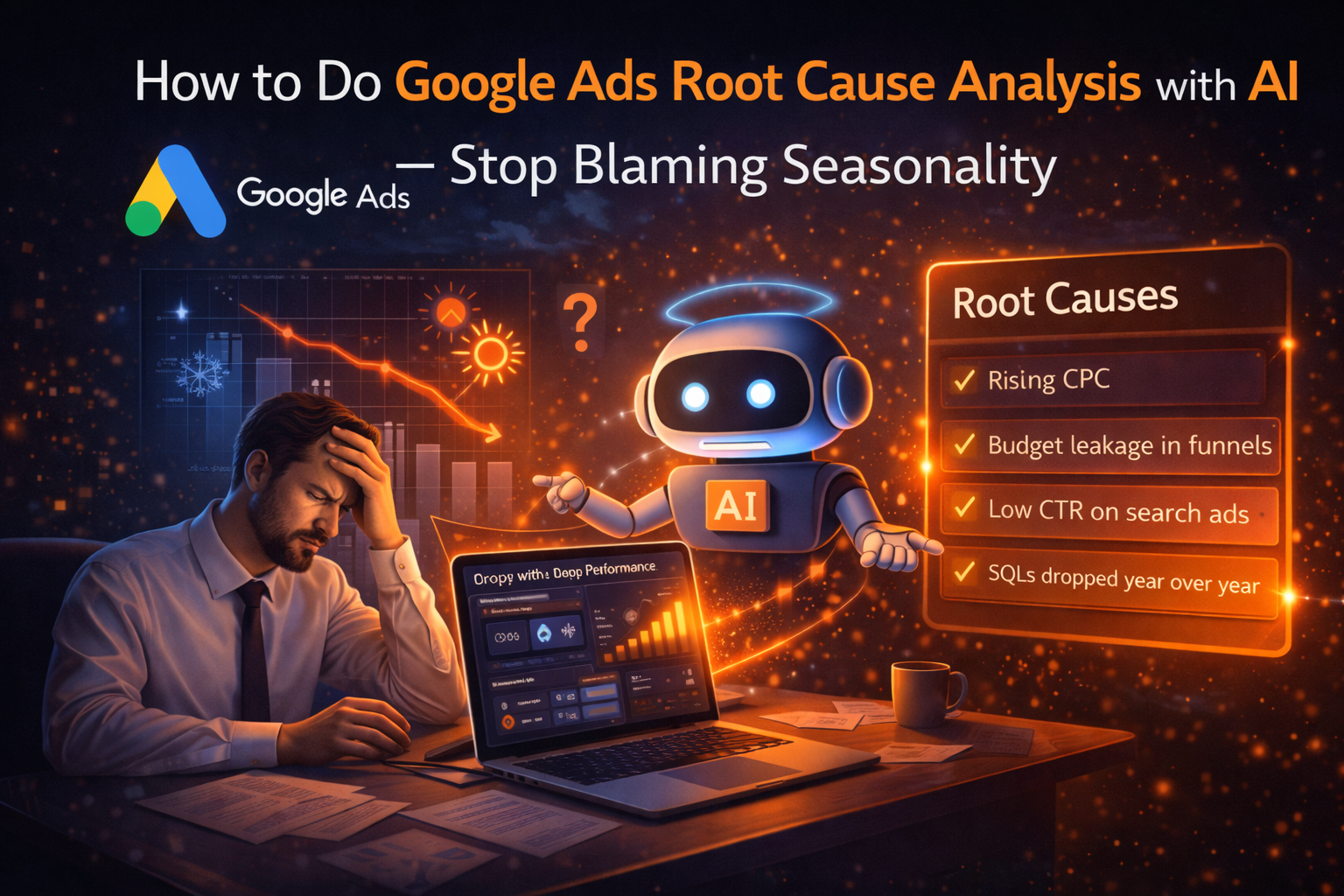 Google Ads root cause analysis is supposed to answer one question: why did performance drop? In practice, your team spent three weeks checking dashboards, exporting CSVs, and arguing about whether it's "just seasonality." It wasn't. It was four compounding failures that triggered within the same seven-day window — and no one caught them because they were looking at each metric in isolation.
